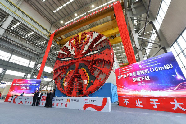 當日,一臺最大開挖直徑達16.07米的超大直徑盾構機在中國鐵建重工集團長沙第一產(chǎn)業(yè)園下線。這臺盾構機整機長150米,總重量4300噸,這是我國迄今研制的最大直徑盾構機。